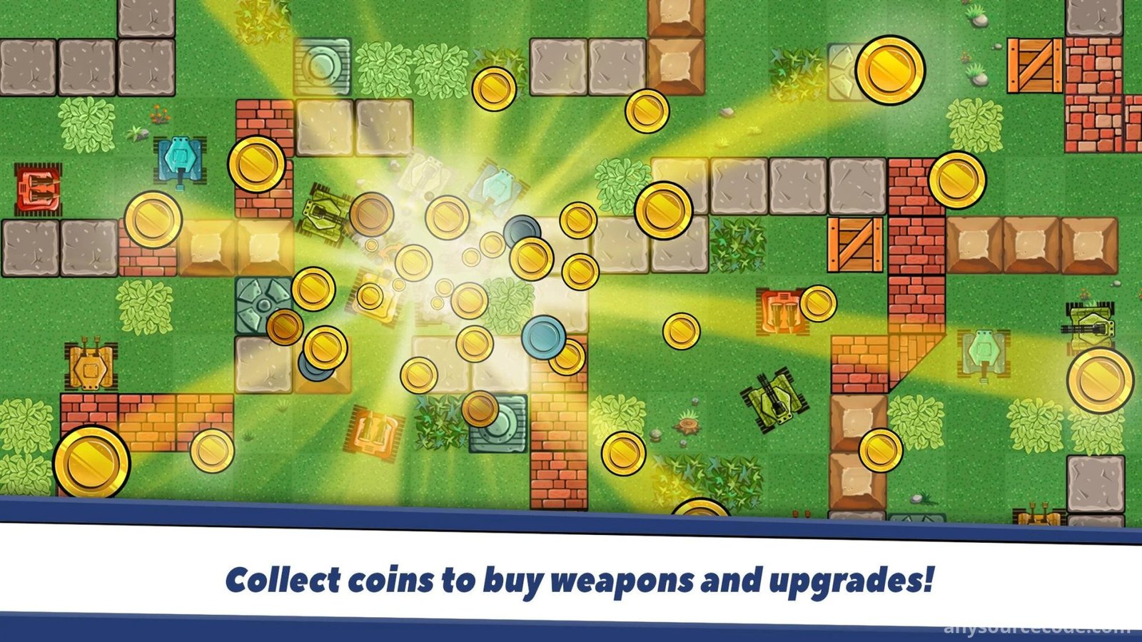 Collect coins to upgrade your tank's stats, purchase and improve weapons.