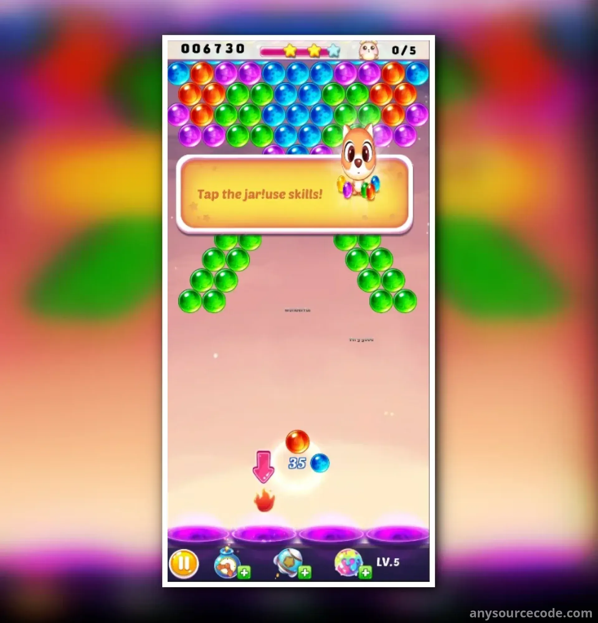 Bubble Mania is a classic bubble shooter game where players can rank up, unlock rewards, and enjoy endless fun across 25 maps and 600 levels. With a huge item shop for in-app and in-game coin purchases, a black market, numerous collectible items, and support for seven languages, Bubble Mania offers an engaging and immersive gameplay experience. The game also includes a tutorial, hint system, AdMob ad integration, and in-app purchases, all made with Unity 2020.3.33f1.
