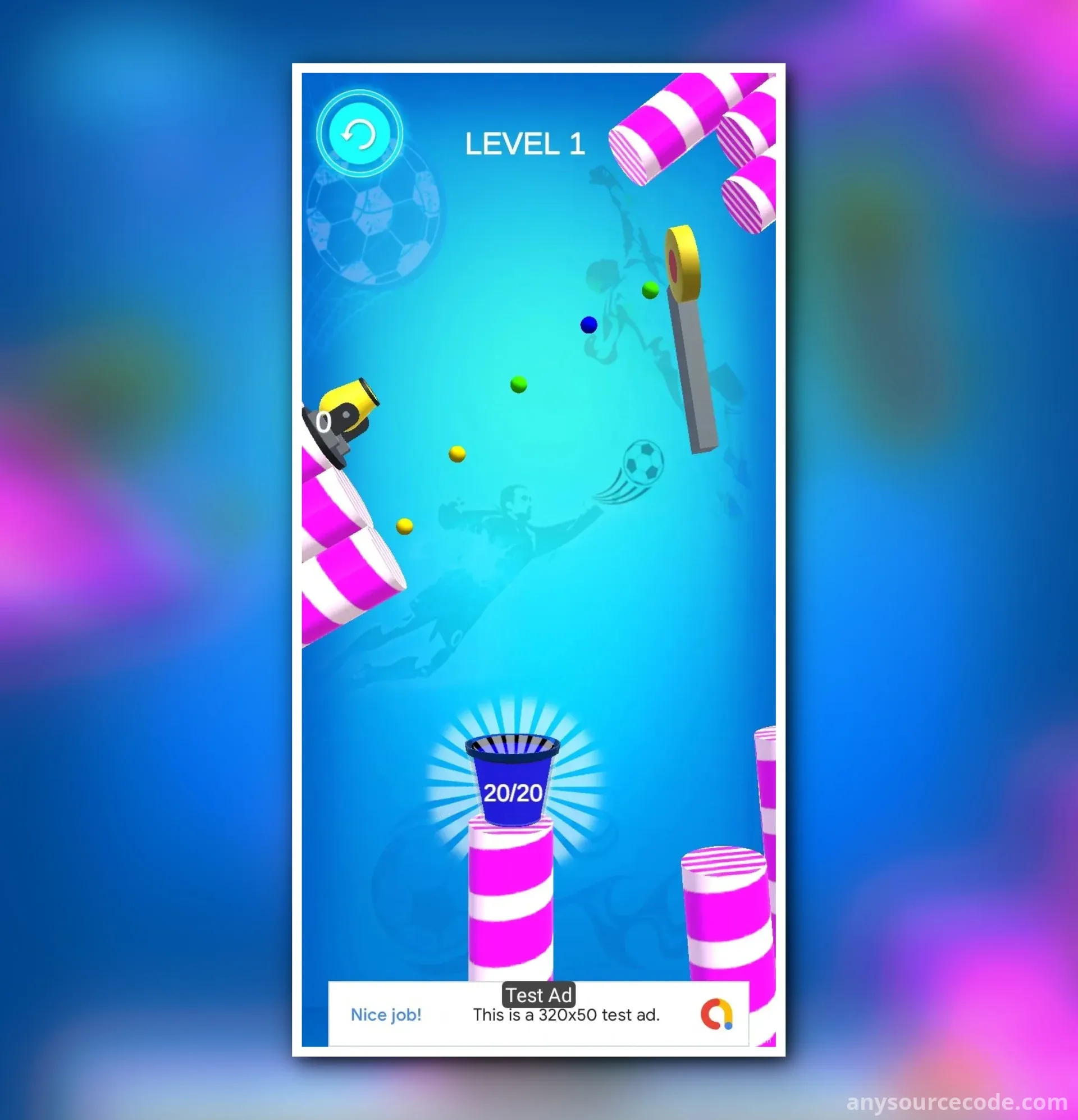 Use your finger to strategically move objects and alter the trajectory of the balls you shoot. With endless levels, this game offers continuous fun and engagement. Ideal for both novice and experienced developers, the game comes with integrated monetization features and supports multiple platforms.