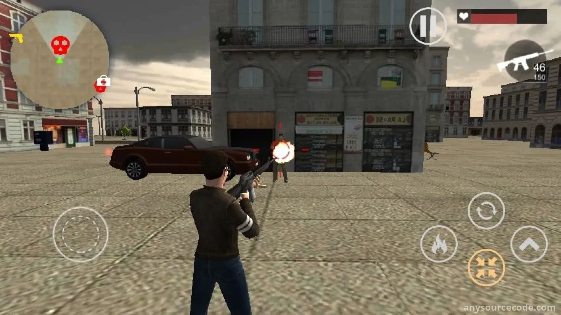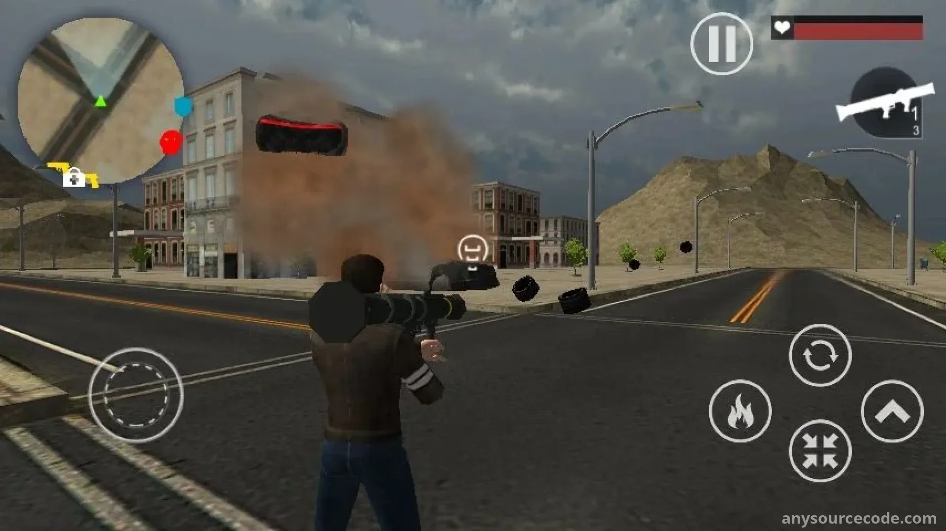 Immerse yourself in Crime Wars of San Andreas, an open-world crime life simulator. Assume the role of a charismatic gangster within a formidable criminal organization. Your mission: vanquish rival gangsters, cleanse the city of the mafia's influence, and establish your dominance. Explore freely, drive an array of vehicles, and unleash chaos on the streets. Utilize minimaps to discover weapons and essential items, adding strategic depth to your pursuit of goals or simply indulging in chaotic fun. With six districts to reclaim, each offering a unique vehicle and weapon, restore order and reign supreme.