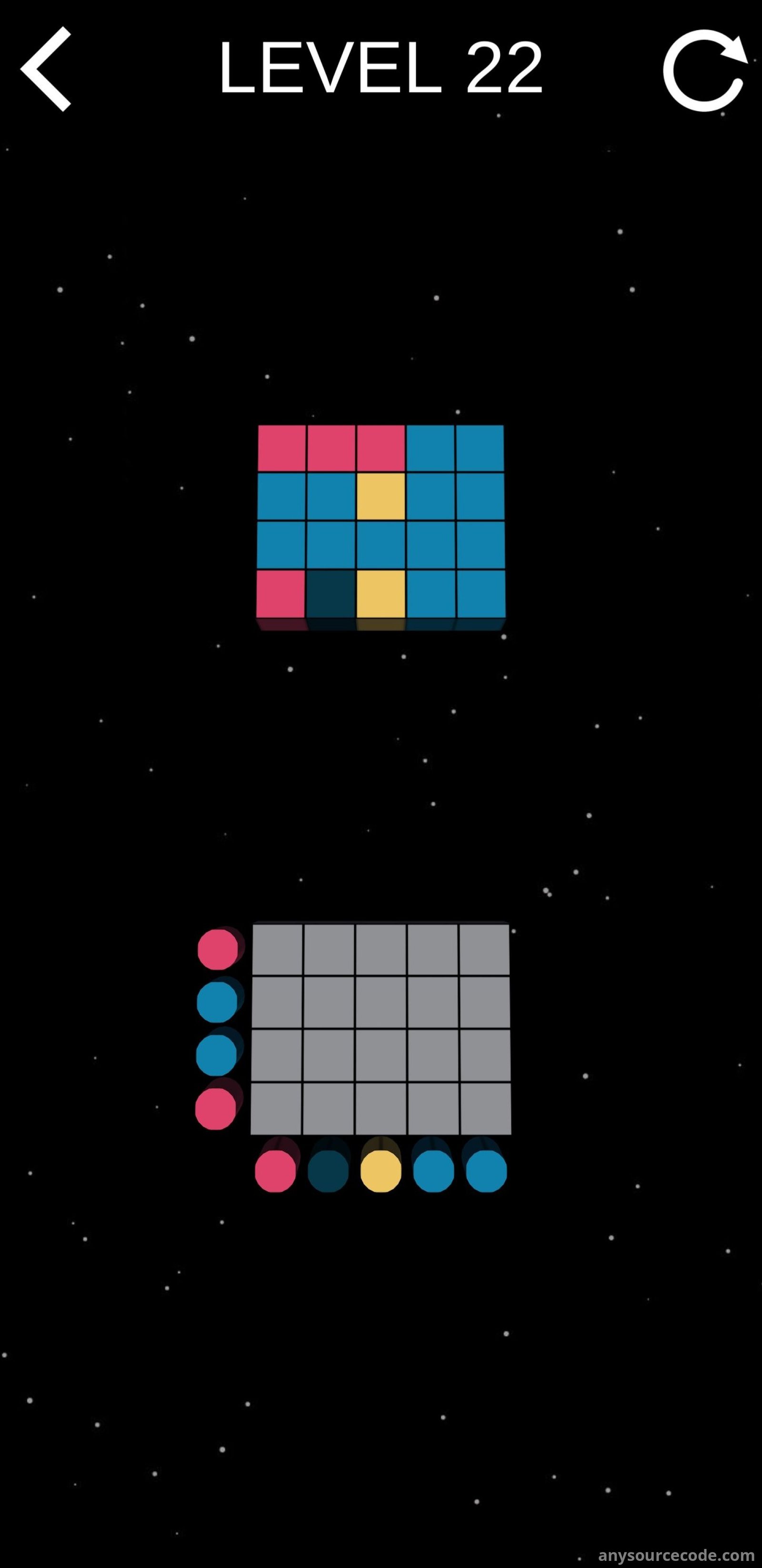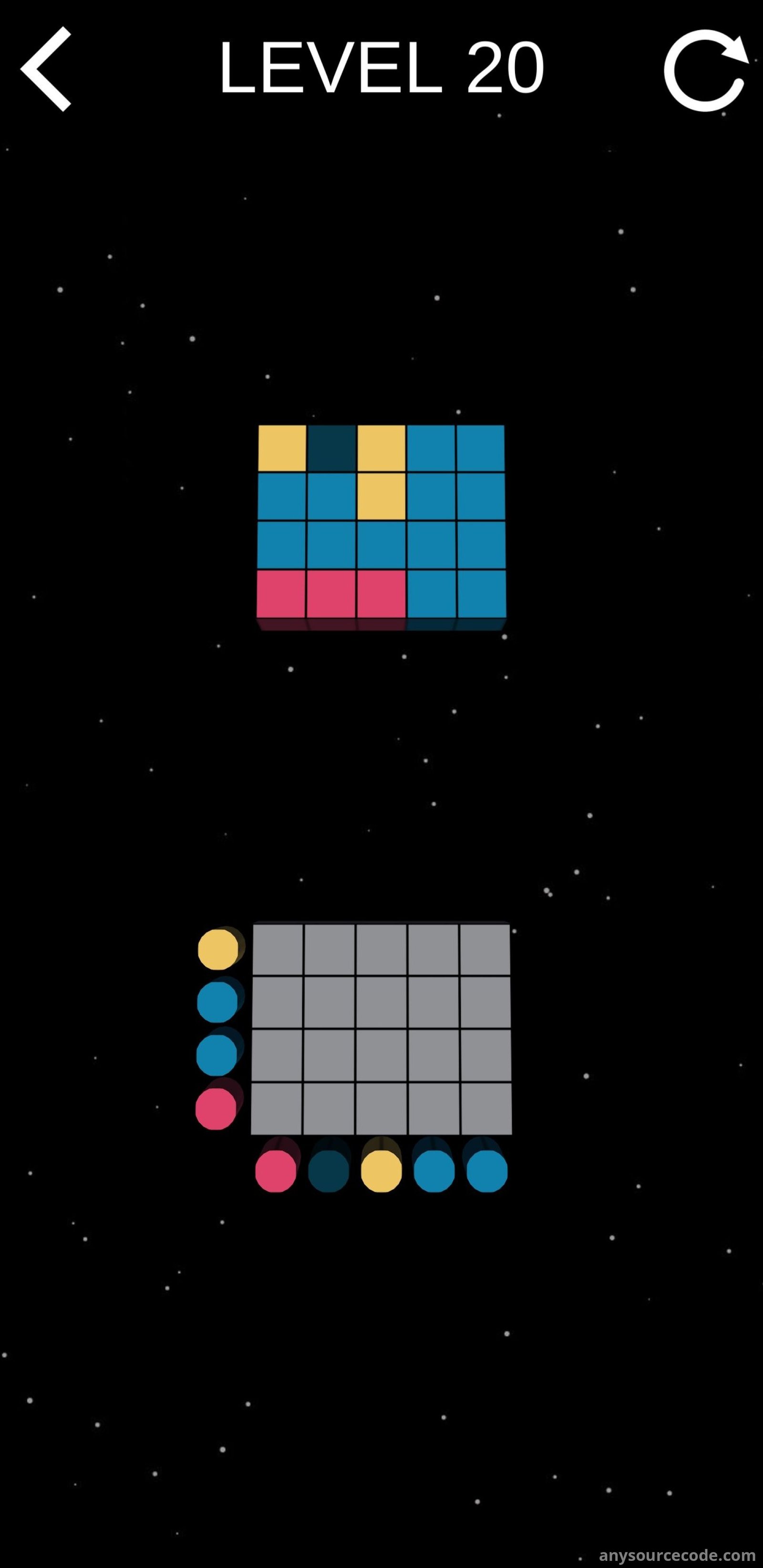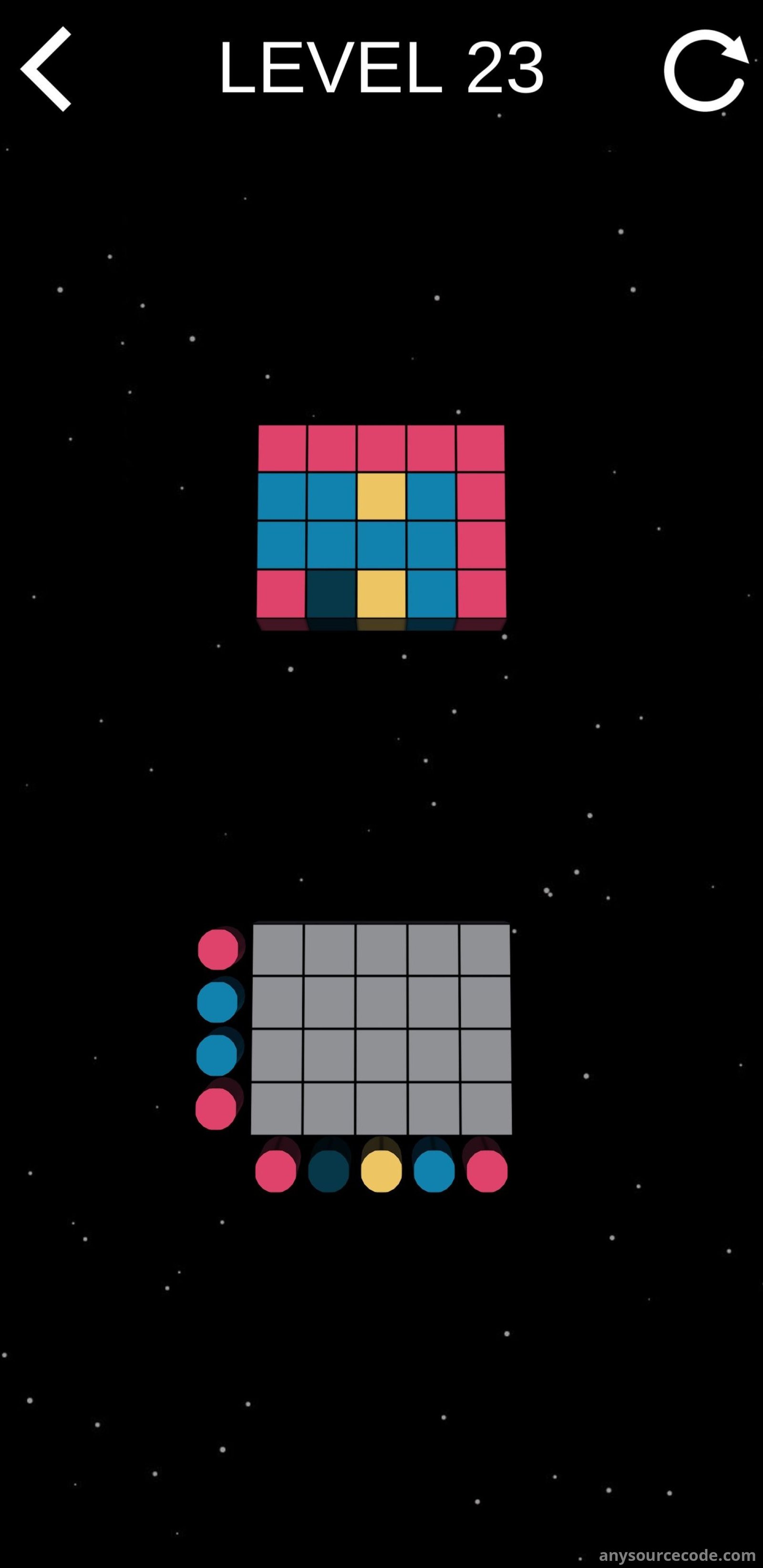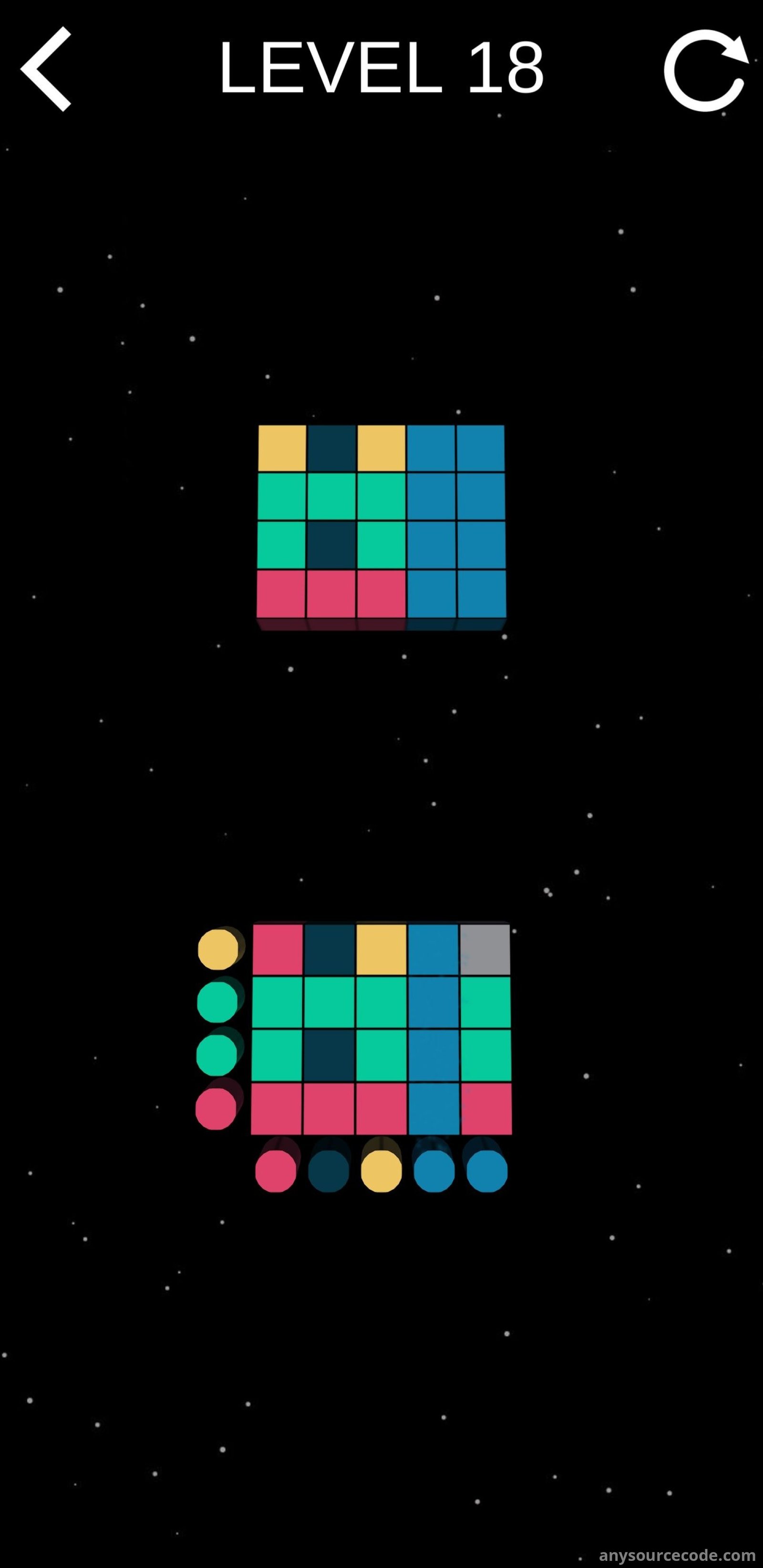 Pattern Match is a simple and fun puzzle game where you click on color buttons to change the tiles' colors in the row or column where the button is placed. The objective is to make all tile colors match the pattern. With 72 challenging levels, this game offers hours of engaging gameplay. The levels are easily customizable, stored as prefabs in the "Resources/Levels" folder, allowing for easy modifications and additions.