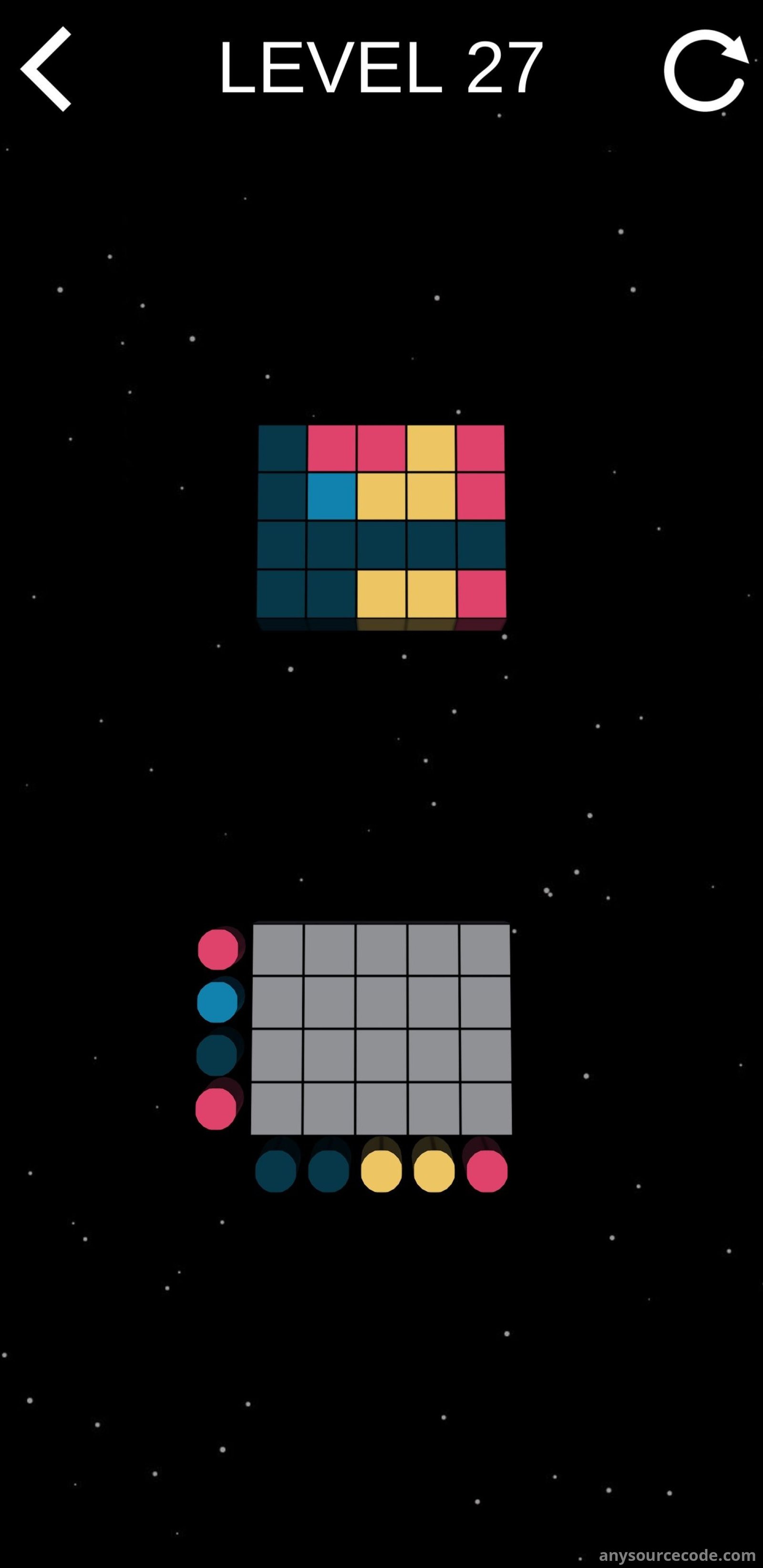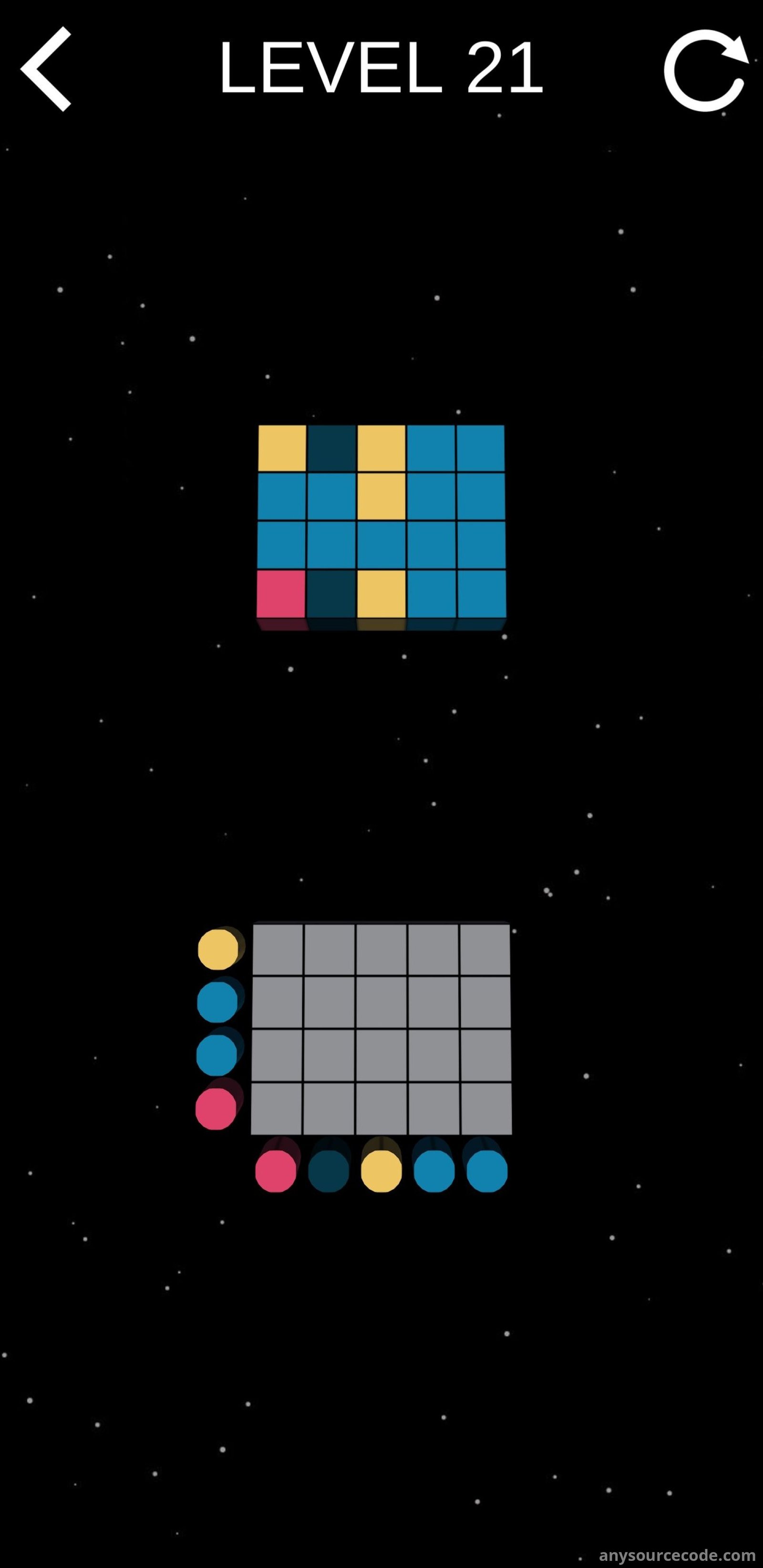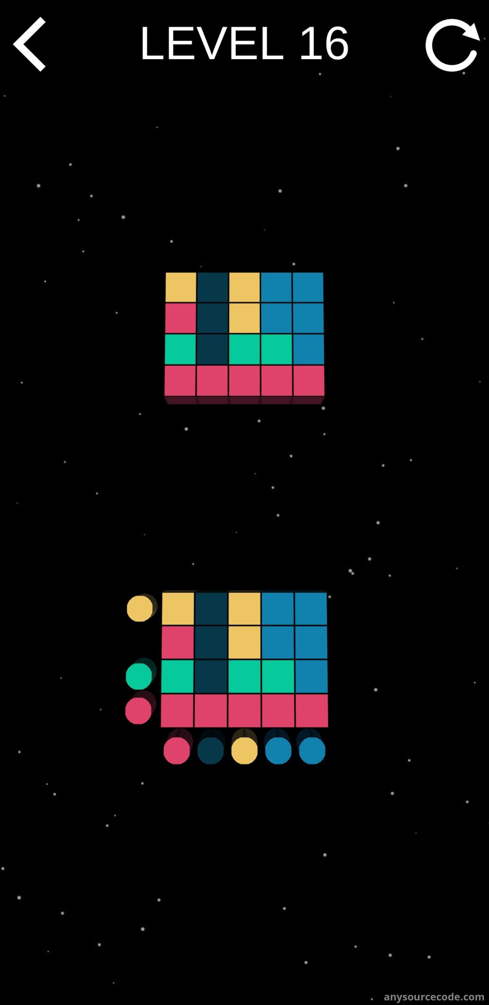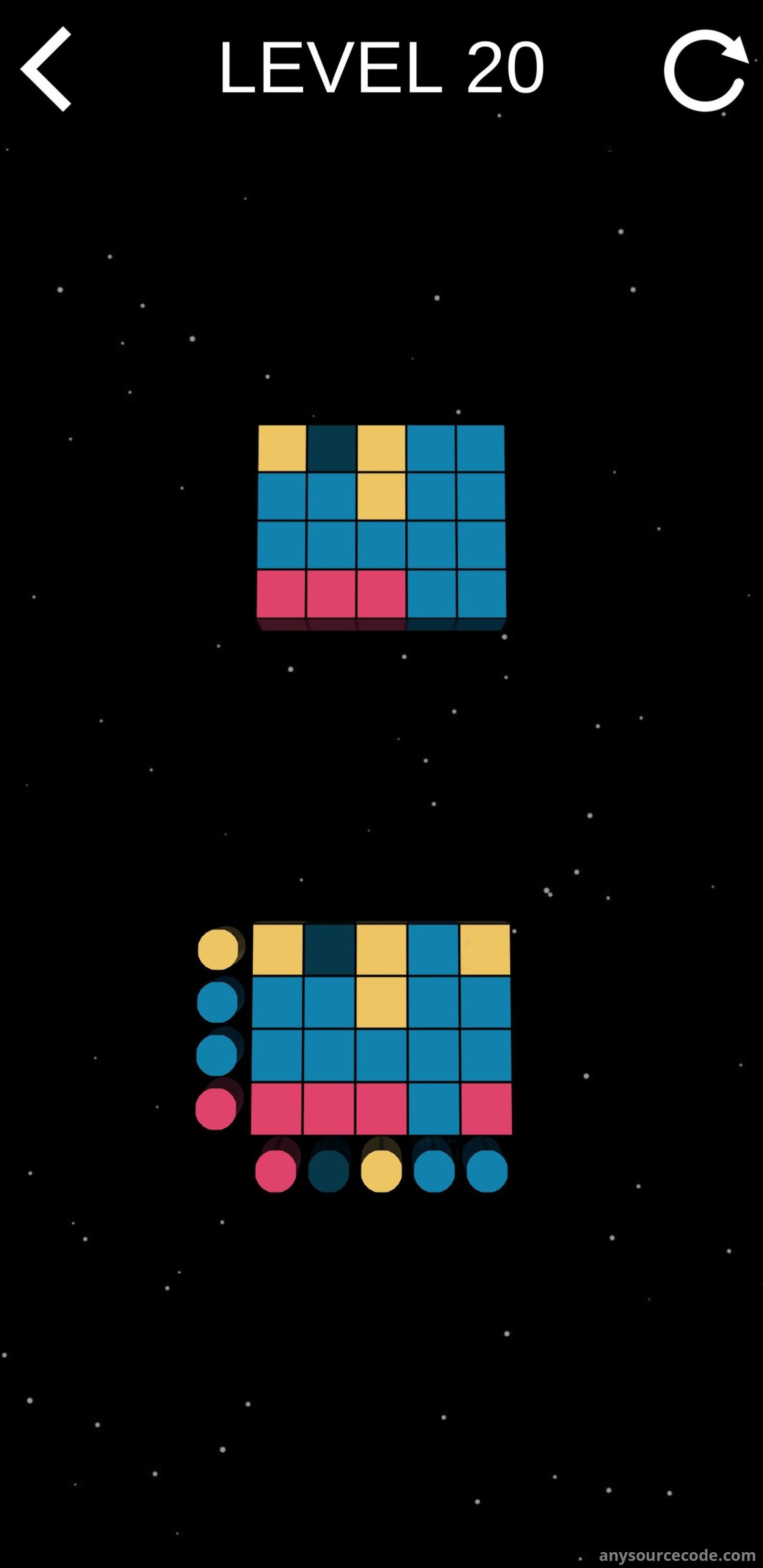 Pattern Match is a simple and fun puzzle game where you click on color buttons to change the tiles' colors in the row or column where the button is placed. The objective is to make all tile colors match the pattern. With 72 challenging levels, this game offers hours of engaging gameplay. The levels are easily customizable, stored as prefabs in the "Resources/Levels" folder, allowing for easy modifications and additions.