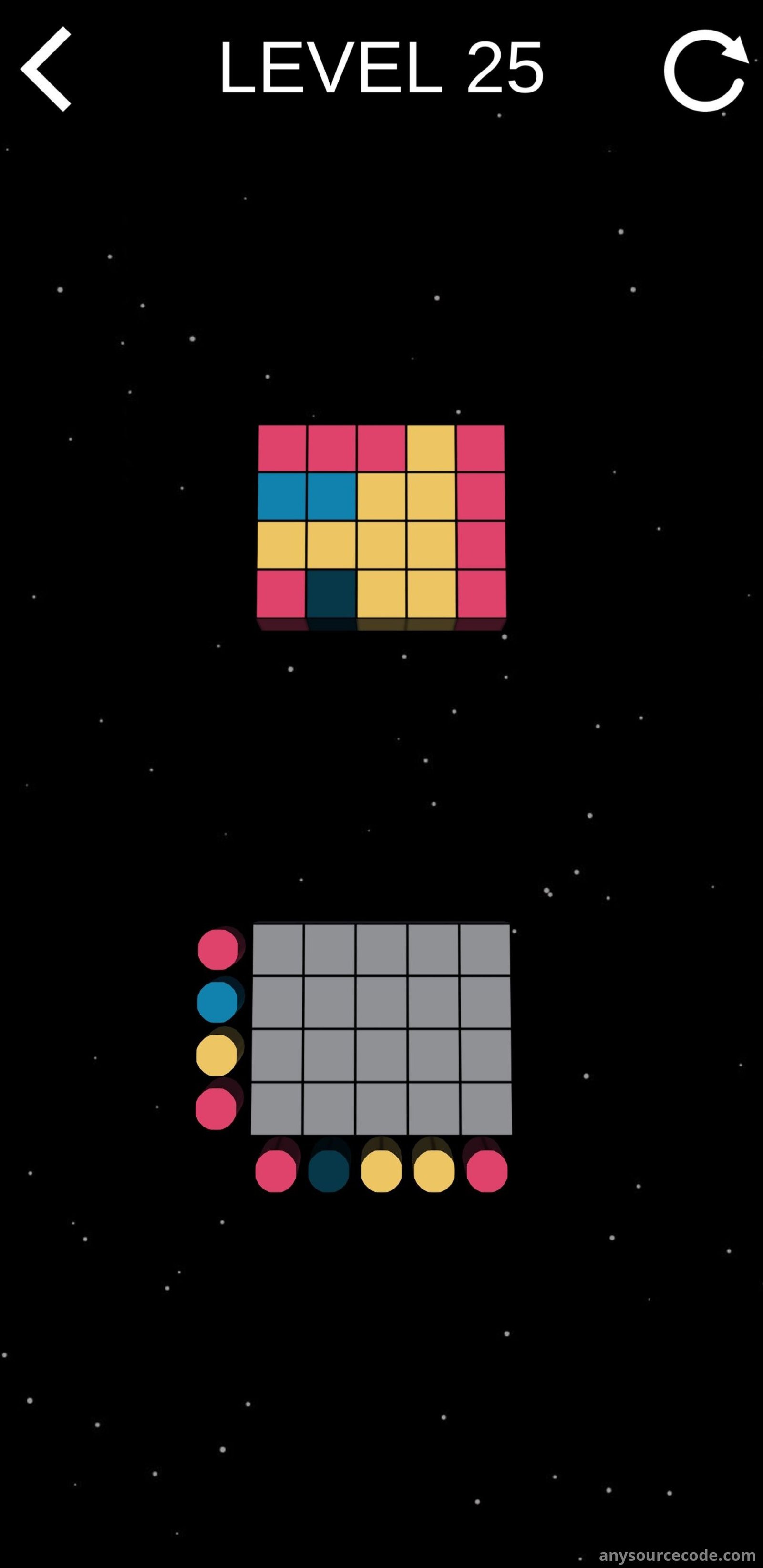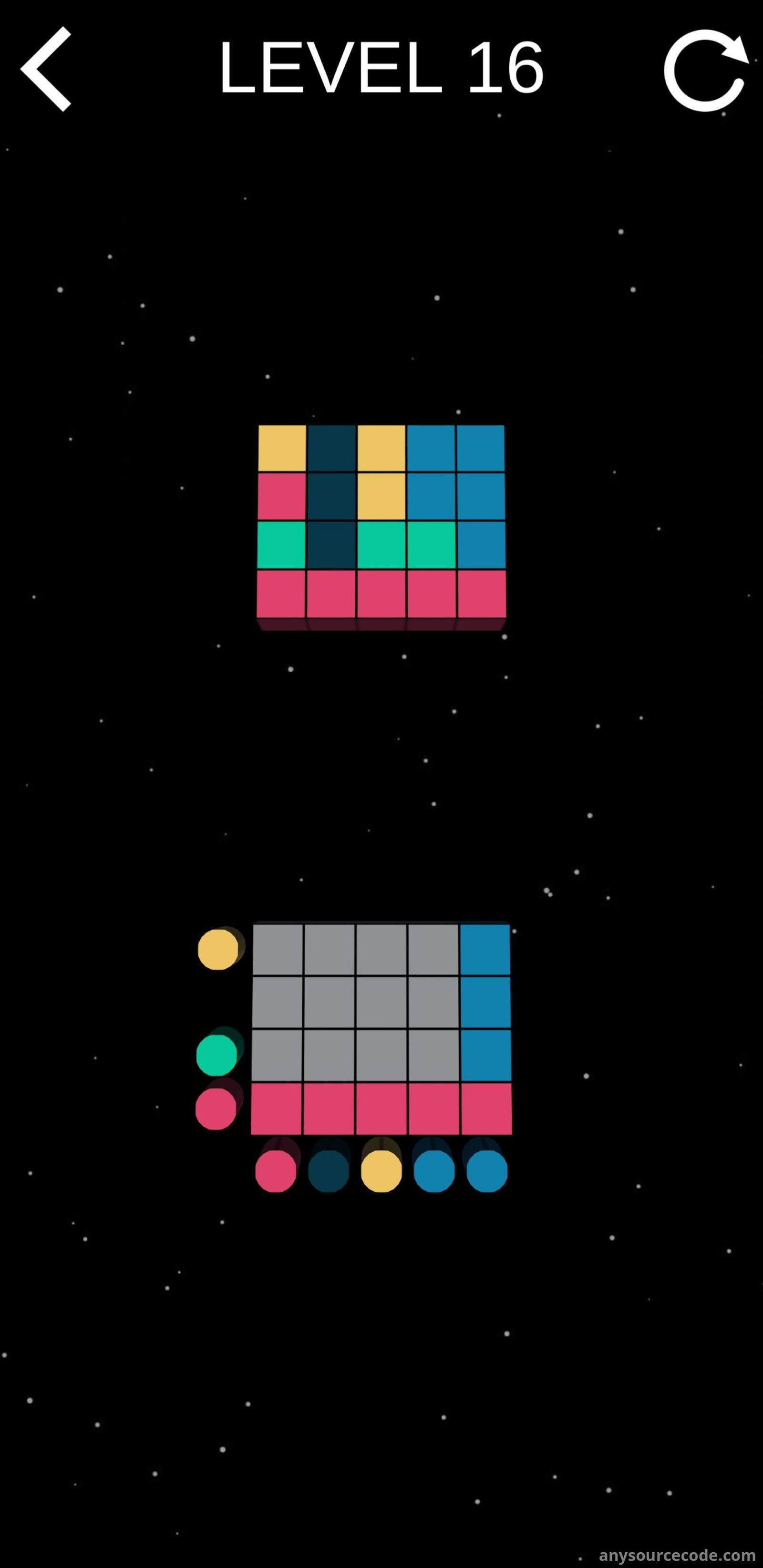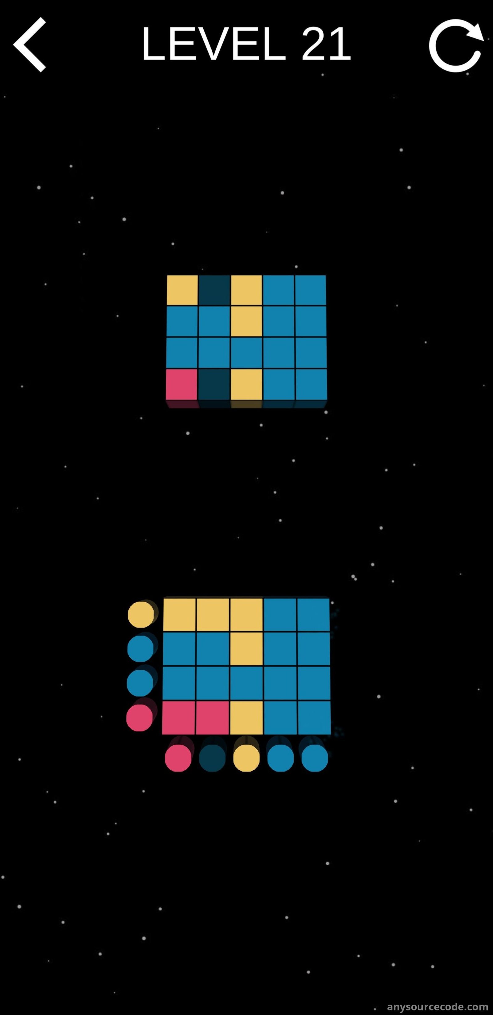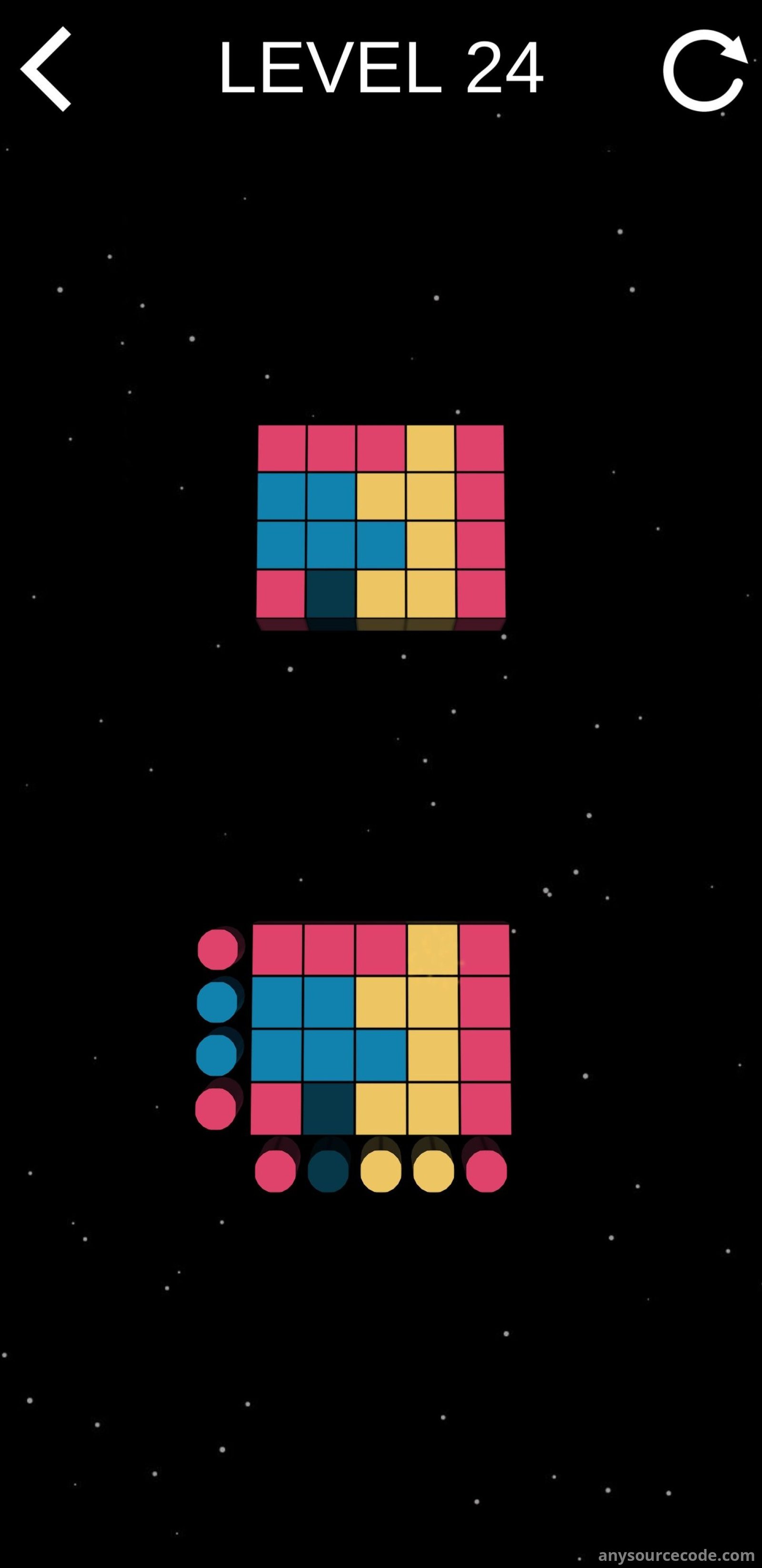 Pattern Match is a simple and fun puzzle game where you click on color buttons to change the tiles' colors in the row or column where the button is placed. The objective is to make all tile colors match the pattern. With 72 challenging levels, this game offers hours of engaging gameplay. The levels are easily customizable, stored as prefabs in the "Resources/Levels" folder, allowing for easy modifications and additions.