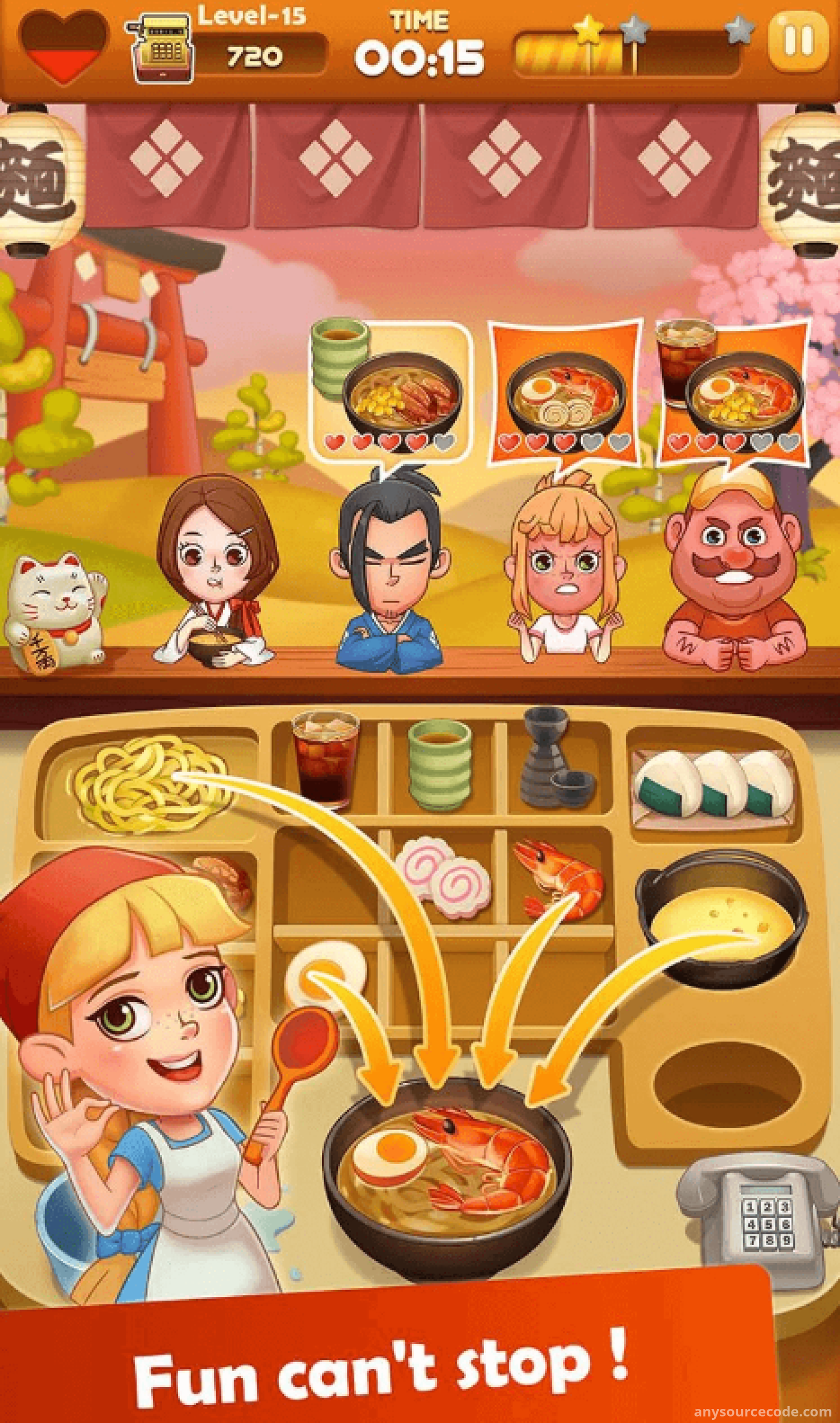 - UPGRADE your restaurant, and own your dream Ramen town! All kinds of props, to help you easily perfect and complete, do not fall a star!