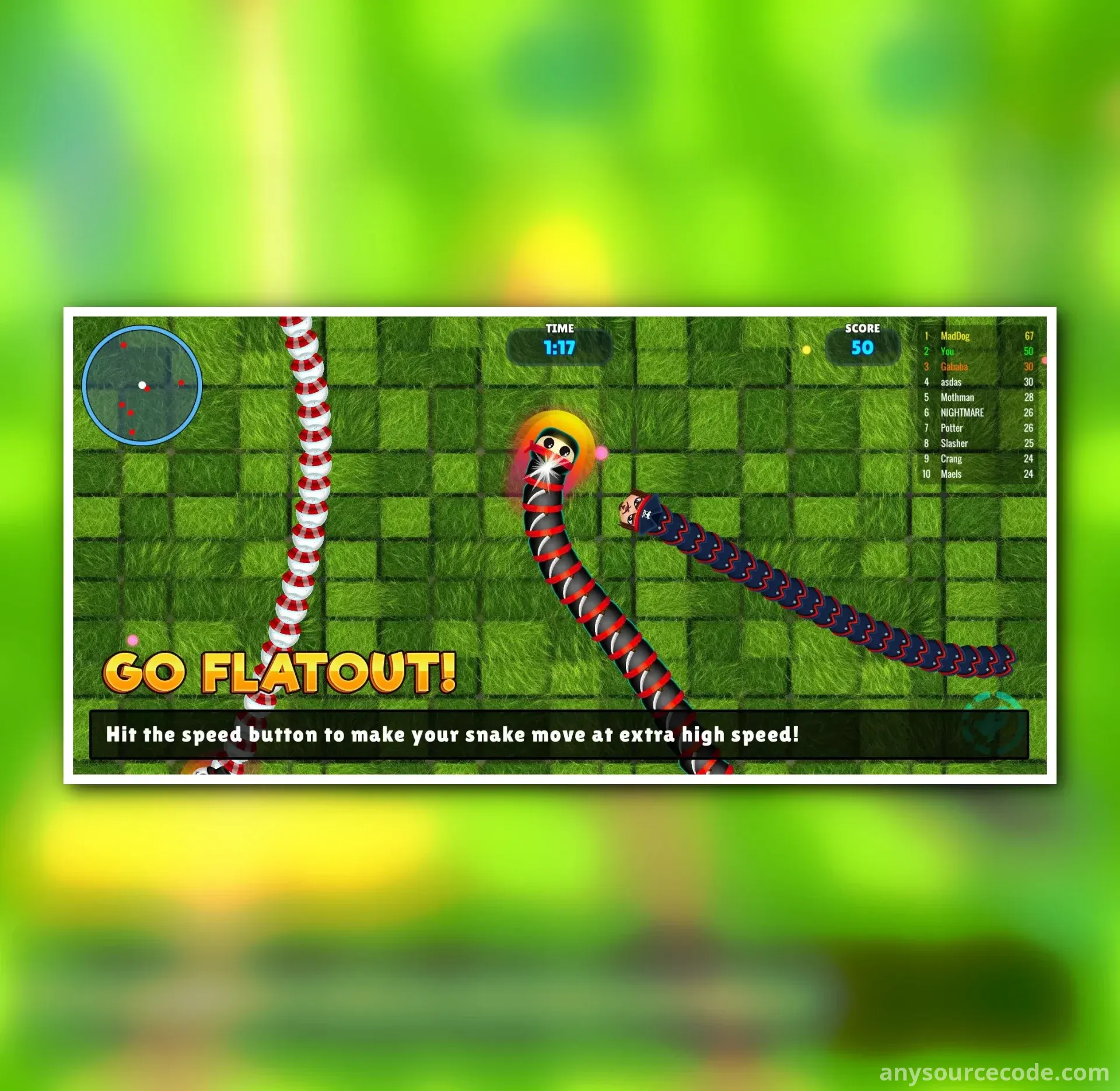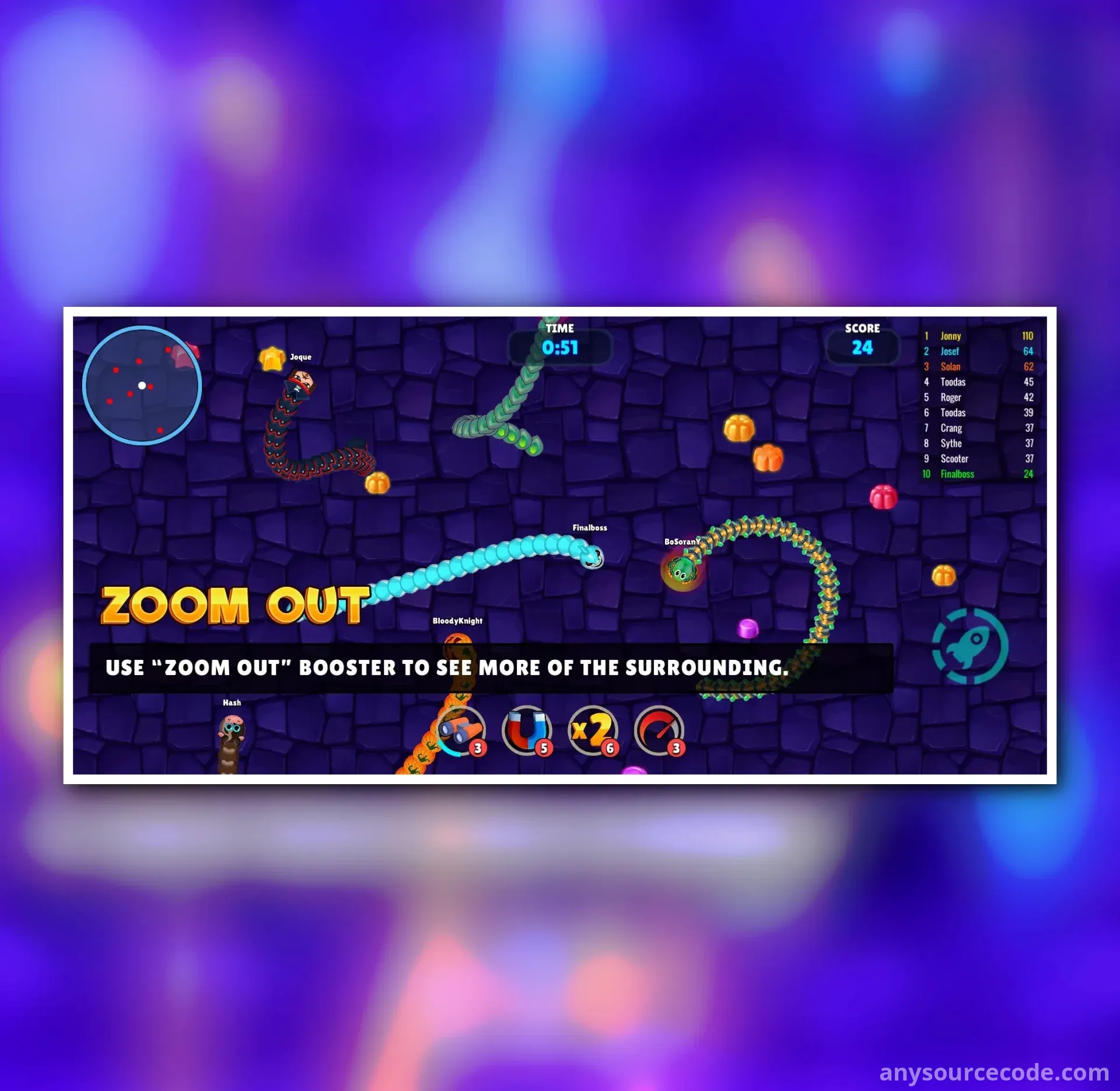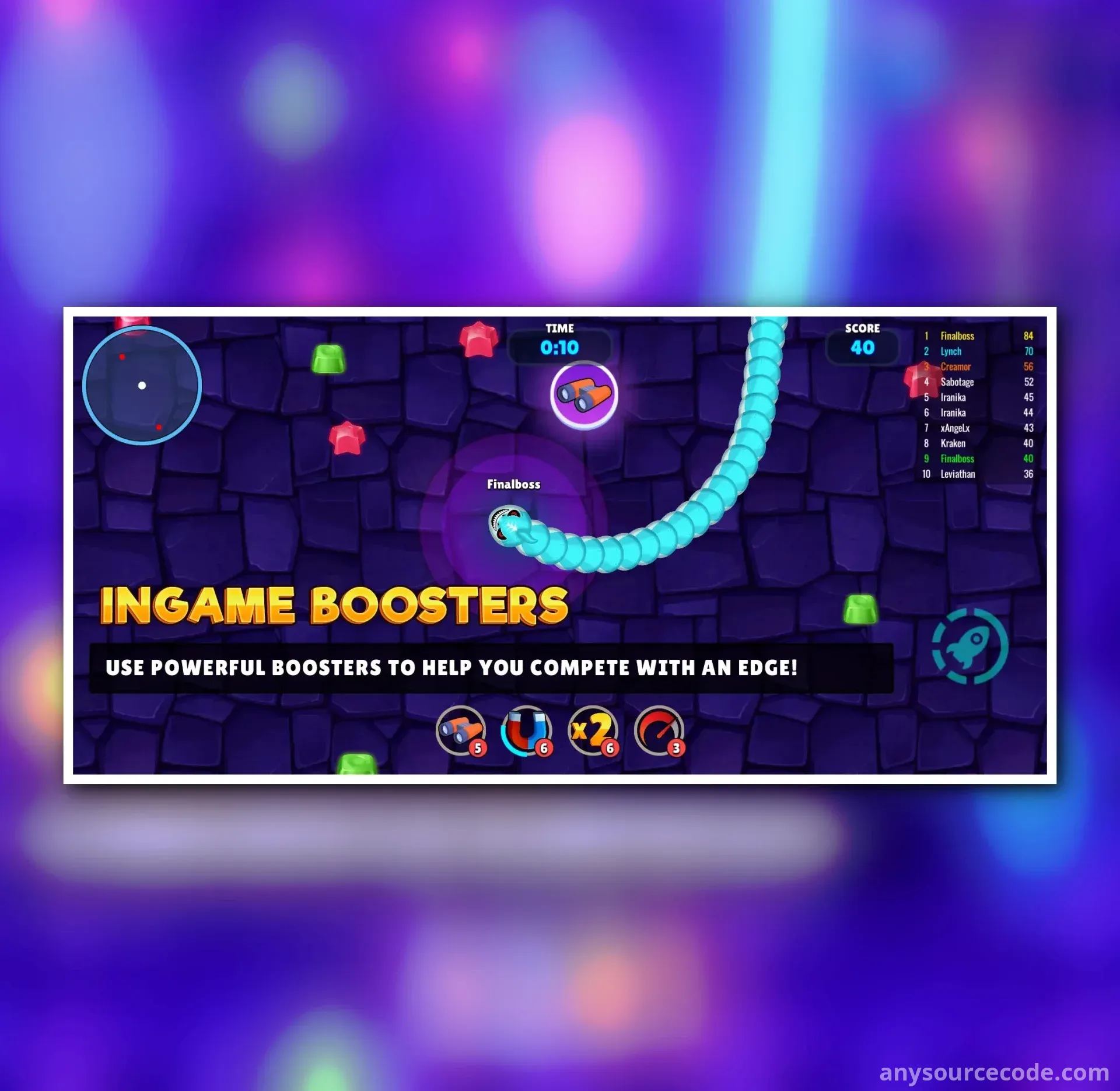Snake Warz IO (slither, worm) complete game template allows you to build your own snake, slither, or worm io game within minutes. Challenge your players with ultra-smart AI bots and create an engaging gaming experience.