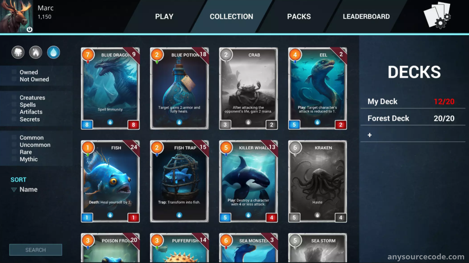 -Tons of extra features (AI, Pack open, User Login, ELO ranking...)