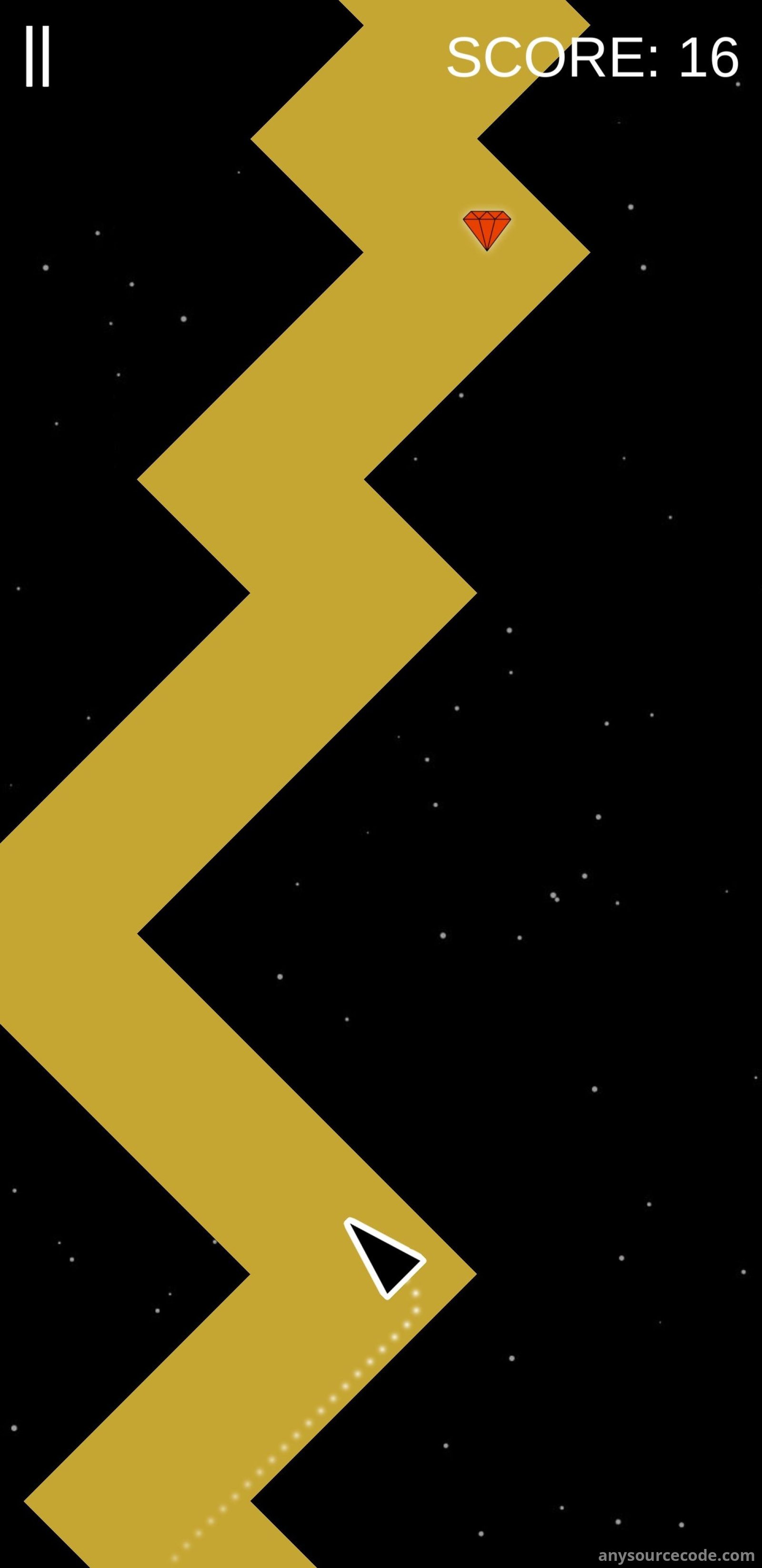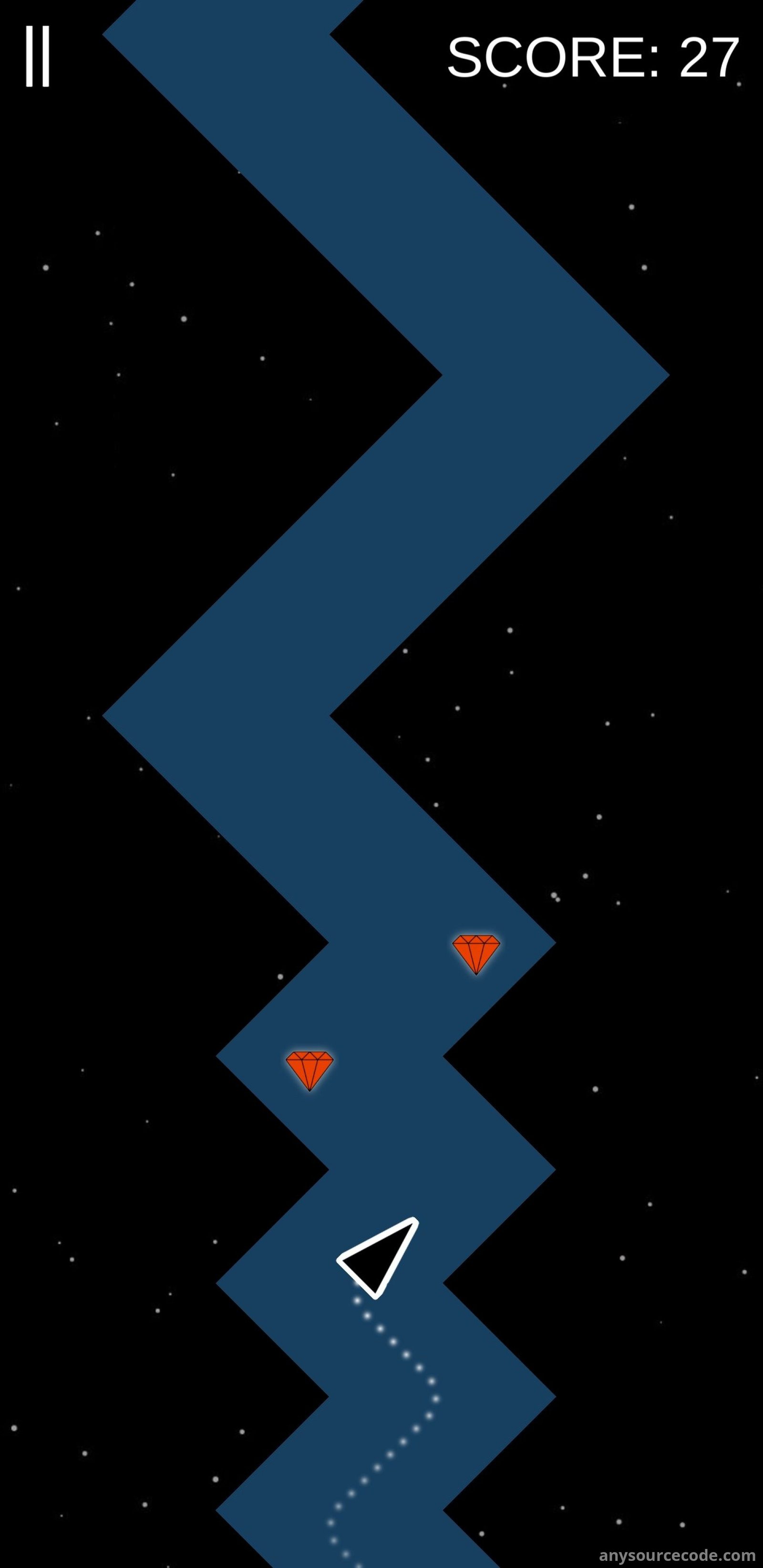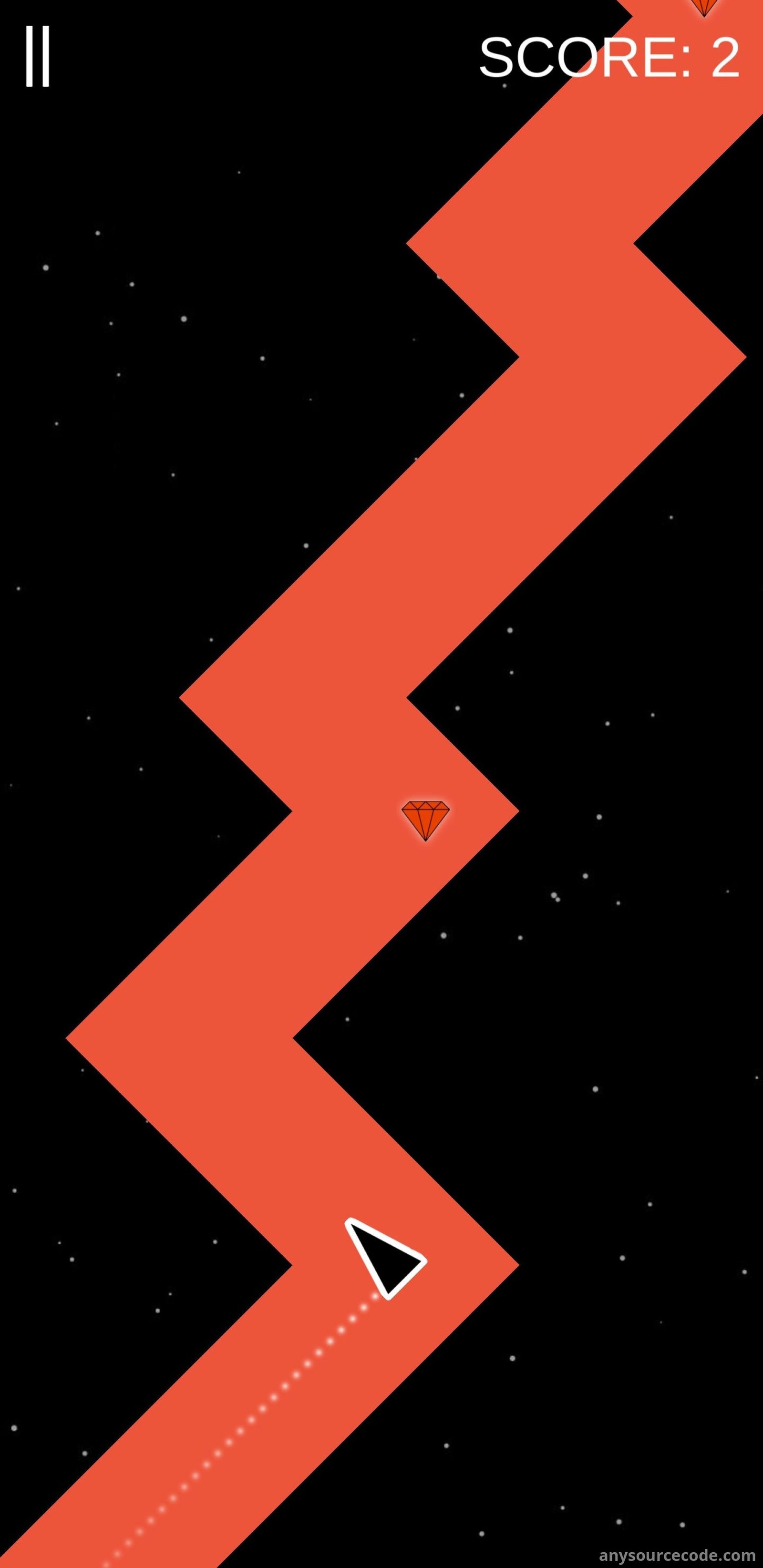 Zig Zag is an engaging Unity game where players control an arrow along a winding path. The objective is to avoid hitting the edges while the arrow continuously speeds up. Players can tap the screen to turn left and right, aiming to score as much as possible. Collect gems to unlock new items in the shop menu.